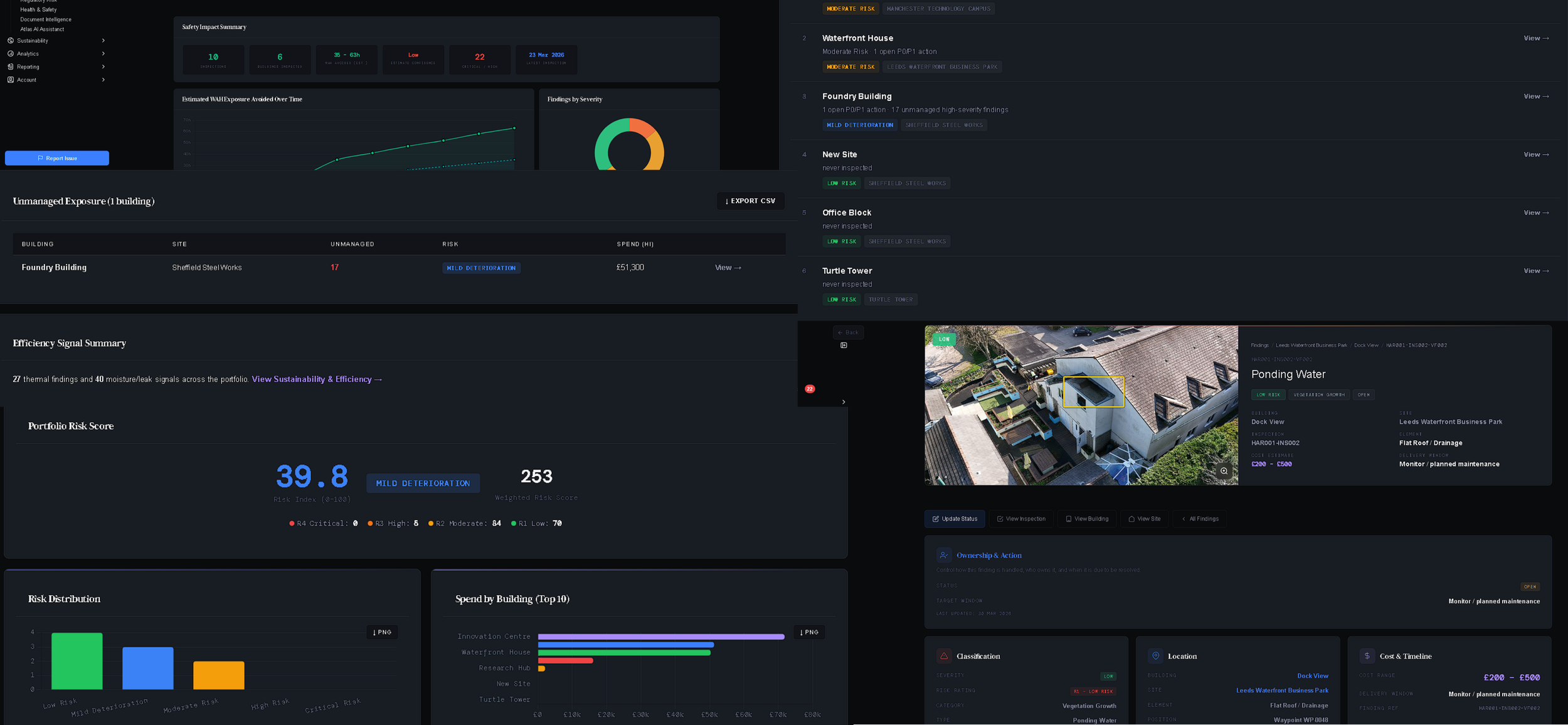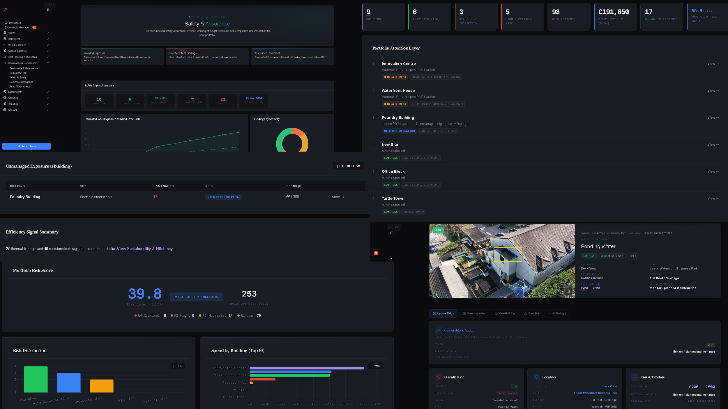Prioritised actions with CAPEX estimates. BAC Evidence Packs. Live compliance dashboards. Attention queues ranked by risk score. All through Atlas.