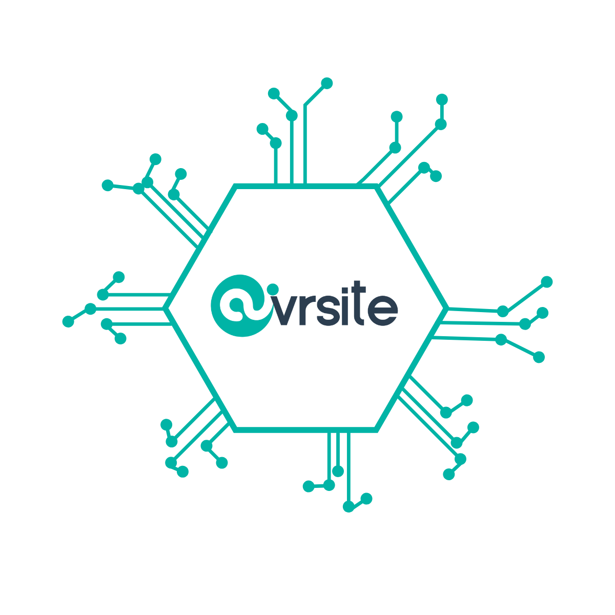 Logo of Ovrsite with a hexagon and circuit lines on a black background.