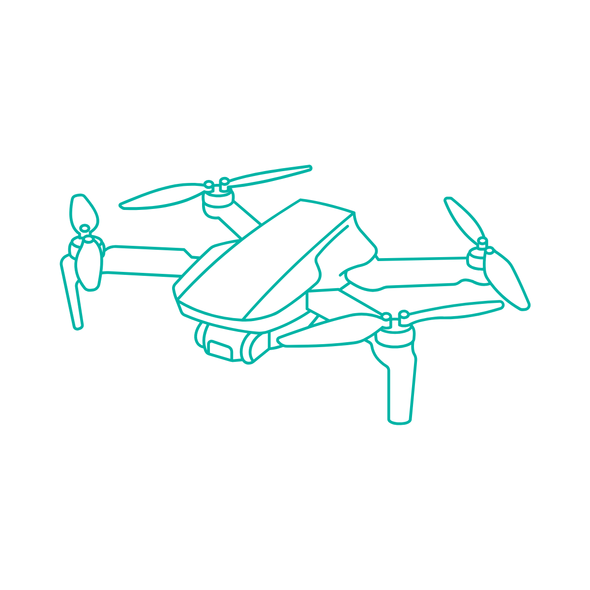 Outline drawing of a quadcopter drone with four propellers, on a black background.