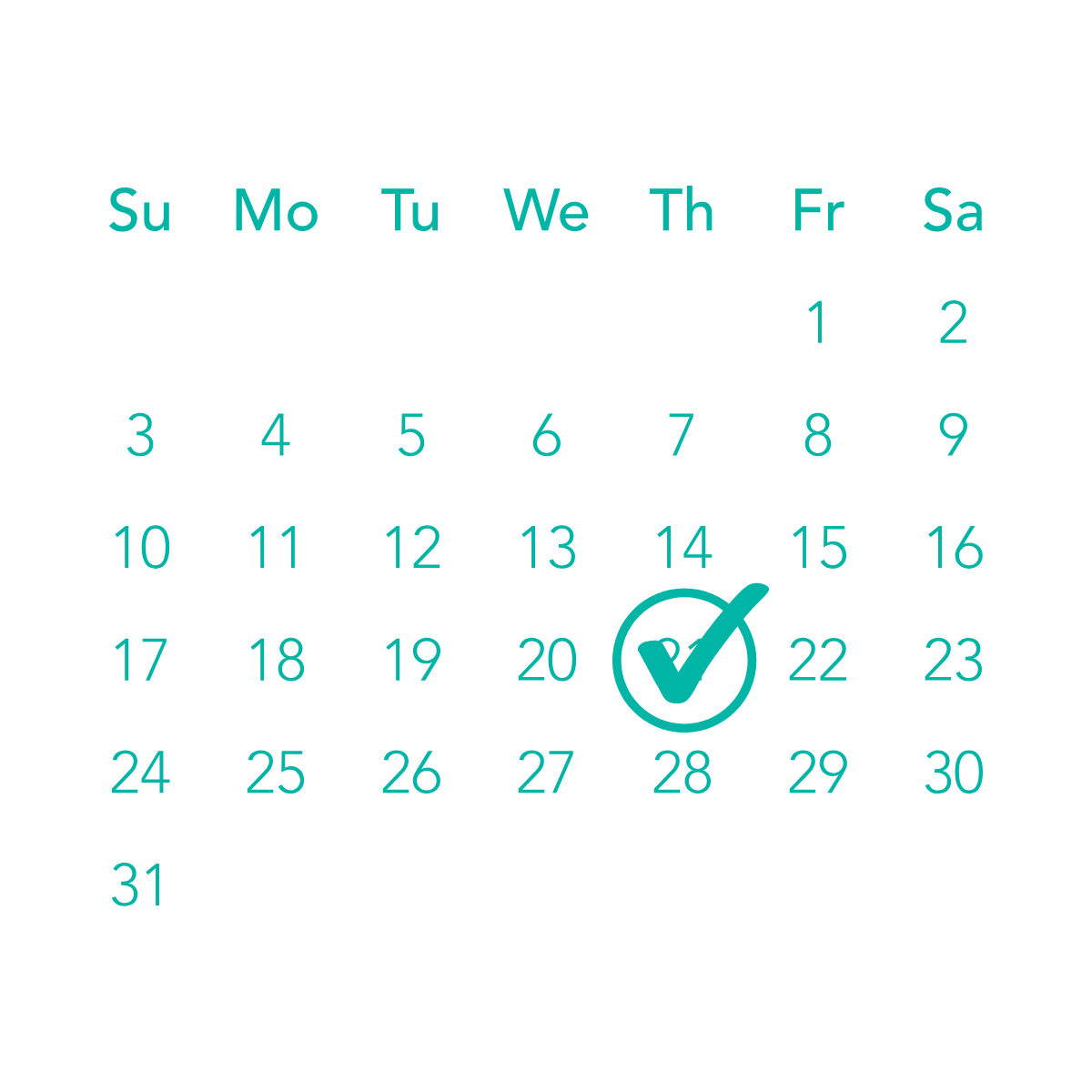 Teal check mark inside a circle.