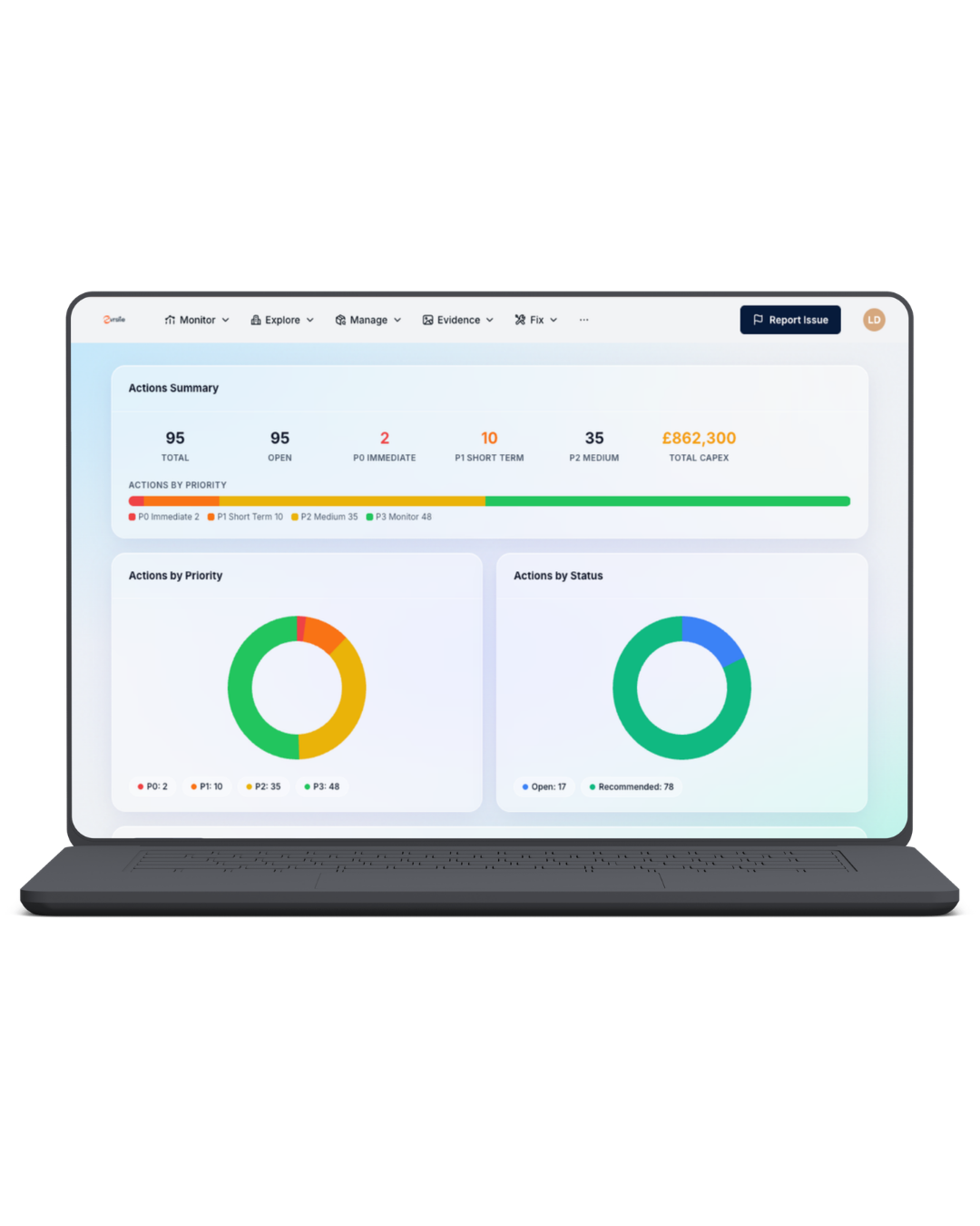 A prioritised “do now / do next / monitor” action list that can be handed to contractors.