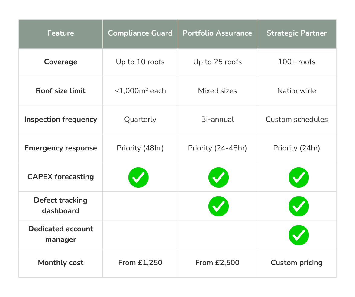 Quarterly or bi-annual inspections mean small issues get flagged before they become £50k+ repair bills.