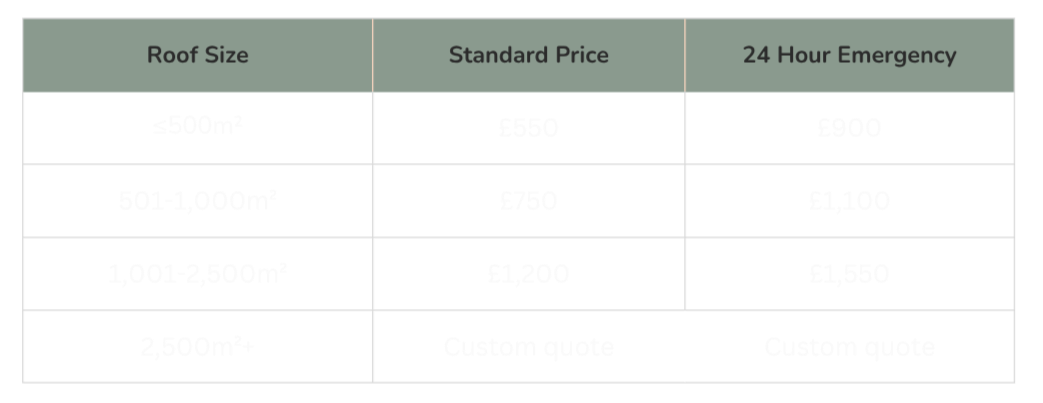 Leak investigation, ponding water, visible damage. 24hr turnaround available.